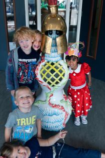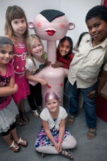 De Gantel and the Maria Montessorischool occupy one building in Wateringseveld (a suburb of The Hague). The artist Hans van Bentem had already been commissioned to design a fountain for the square in front of the school building, and consequently was also invited to create a new work of art for the schools themselves. Van Bentem wanted to use the moulds he made for the fountain as roof sculptures. In the end, however, he chose to use seven existing sculptures instead. These fashion victims had been on tour of a number of museums and galleries and were in need of a permanent location. The sculptures have been placed at various locations in the schools, with lots of children running around.