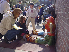 Het bijbehorende stripalbum is gemaakt in samenwerking met de leerlingen van de school. De kinderen hebben de hoofdpersonen ontworpen en Ingrid Mol heeft, in samenwerking met Quinten Smith, deze figuren vervolgens gebruikt als uitgangspunt voor het verhaal. Het stripalbum is geschikt voor kinderen vanaf groep 5 en natuurlijk ook voor volwassenen. De combinatie van een verhaal en driedimensionale figuren komt voort uit de marktstrategie van grootschalige stripproducenten als de Disney Studio en Manga. Vaak zijn de hoofdpersonen uit tekenfilmproducties en strips als actie-poppen in de speelgoedwinkels te koop. In het geval Ingrid Mol zijn de personages levensgroot op het schoolplein aanwezig en gebruiken de kinderen de beelden om op te klimmen en om mee te spelen.