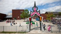 The artists duo of Jansen & Josten from The Hague collaborated with the children of the school to design a new gate to enter the schoolyard from the side entrance. This truly 'royal' gate will only be used on very special occasions.