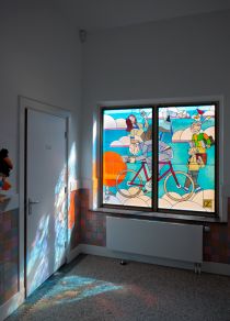 Joost Swarte designed a new stained-glass window for the stairwell of the school. Swarte found his inspiration in the teaching method of 'multiple intelligence' as it is used at the Bavinck school.