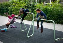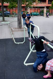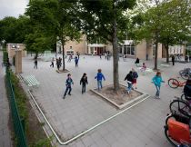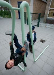 In 2006 the duo of KapteinRoodnat (Marleen Kaptein and Stijn Roodnat) installed an art work consisting of several hundred meters of bright green tubes at elementary school De Paradijsvogel, occupying the schoolyard and the assembly hall. The work is inspired by Jacques Tati's 'Mon Oncle'.
