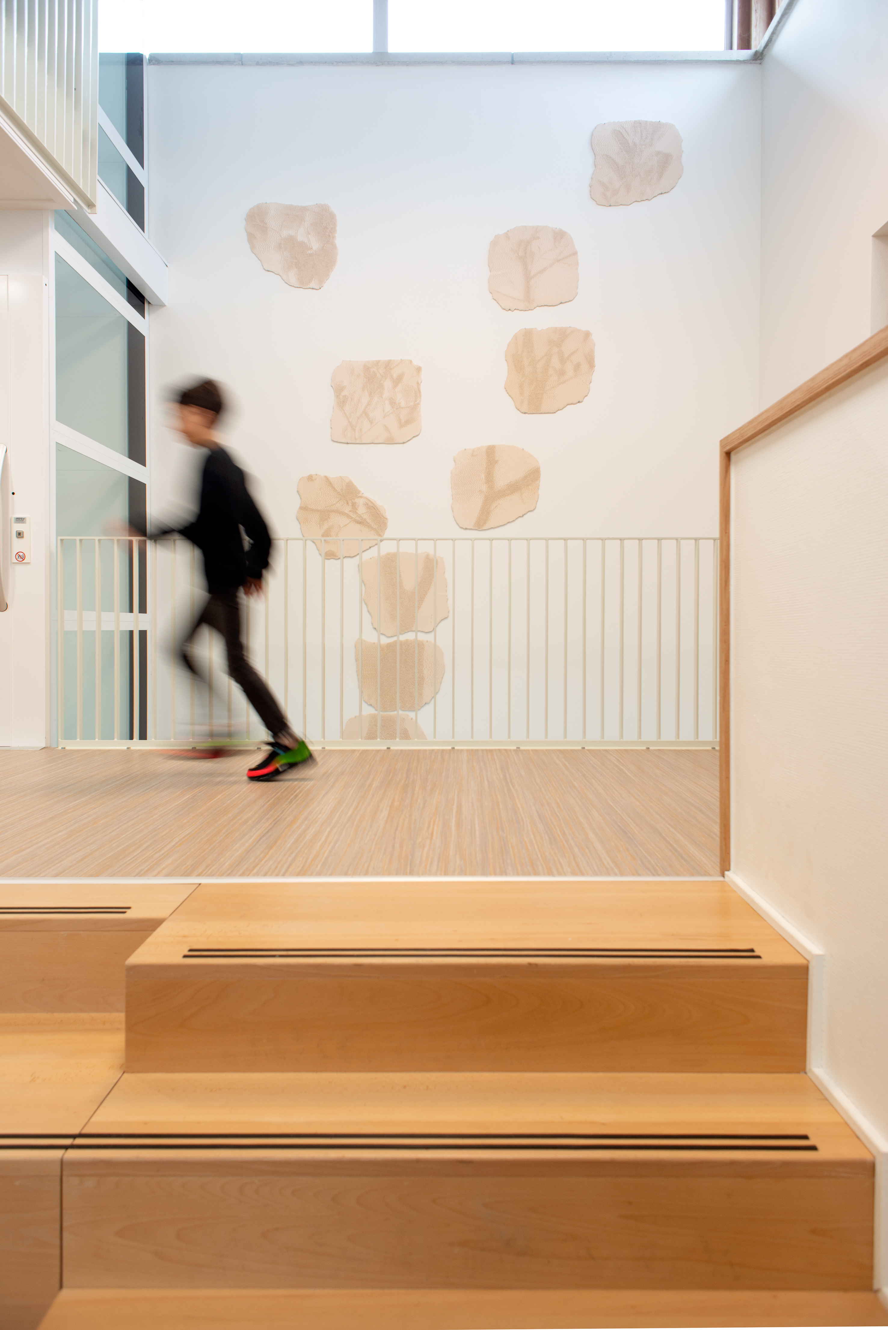 At a time when the whole country was in Lockdown due to corona, some construction projects went ahead nonetheless. The Duinoord School had been working for years to pull the adjacent modernist church building into its own building because it was growing out of its depth. For an appropriate art commission, Maarten Heijkamp was enlisted. He observes nature in detail with his camera obscura, and not only prints his images on photo paper, but hammers it into clay. With an ingenious system, he reproduces razor-sharp details on a large surface. For the Duinoord School, he made a "photograph" of a small Scots pine (Citrus Sylvestrus). From the image he lifted eleven parts and made ceramic reliefs from them. These reliefs were given a place in the stairwell, which connects the old part of the school via two footbridges with the former church area, which has been renovated into an auditorium. The Duinoord School was very happy with the work entitled Growth, which visualizes the cycle from young to old - from root to leaf, without revealing everything at once and leaving room for discovery.