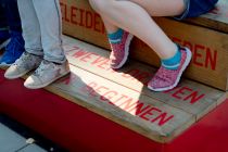 Floating, drifting, poking, pushing... these words on the benches of Rogier Martens are used to describe motion. For the schoolyard of Praktijkschool De Poort the artist designed four benches that are interconnected by means of an underground hydraulic system.