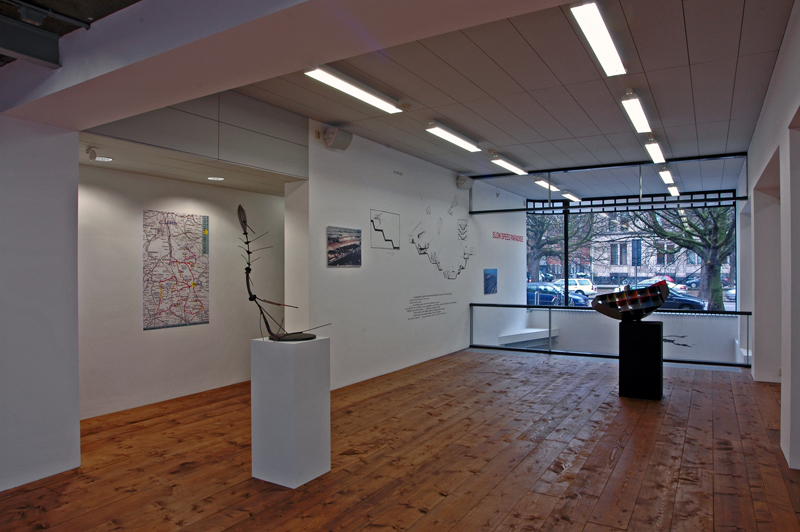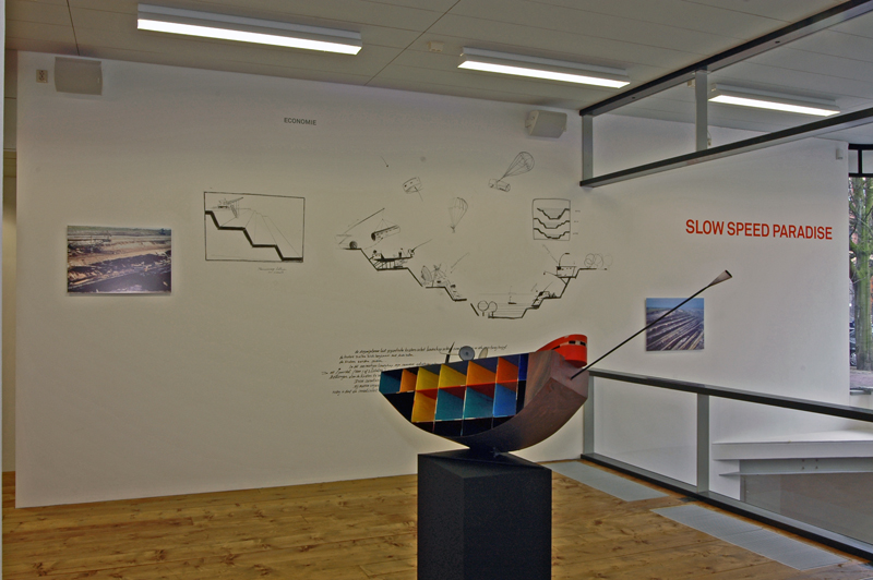Exhibition on the occasion of the presentation of the Cultural Award of the city of The Hague 2005 to Auke de Vries. De Vries is well known both in Holland and abroad for his sculptures in public space. The exhibition focuses on a less publicized aspect of his work as an artist, namely his ideas and projects in the field of landscape design and urban development. In Stroom Den Haag De Vries presents his plans for the revival of an area in former East Germany (GDR) eroded by brown coal mining ('Slow Speed Paradise'), as well as a sculpture in Istanbul condemning the architectural gap between the slums and the plazas ('After the Rain').