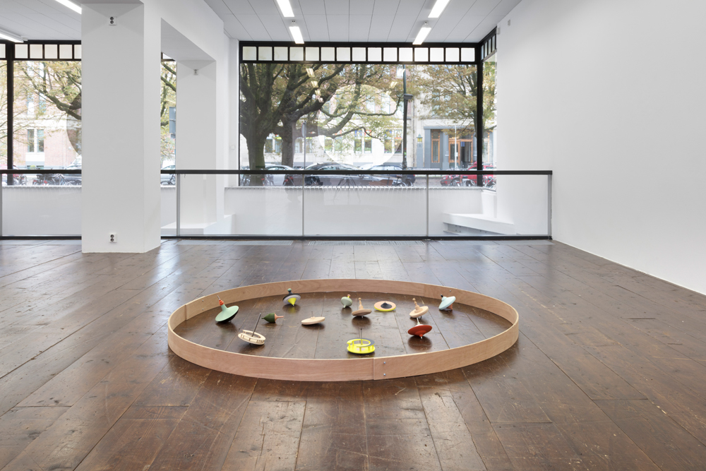 With Proposals for a Qualitative Society (Spinning) artist Céline Condorelli presents Stroom's exhibition space as a place for rehearsal and play. A series of carousels and spinning tops invite visitors to play and interact with them, while (historical) references of radical playground designs show what play means for the city and for society.