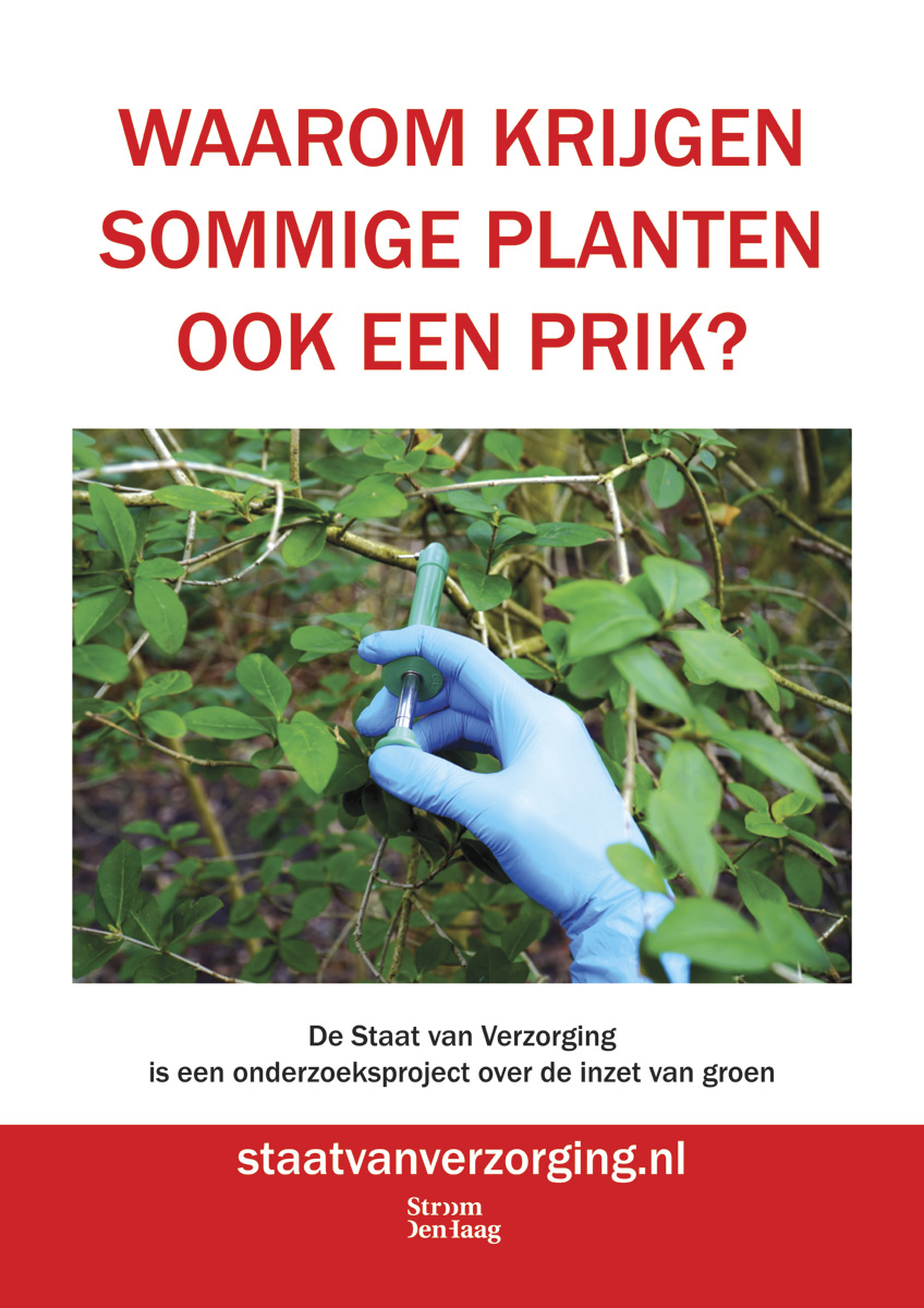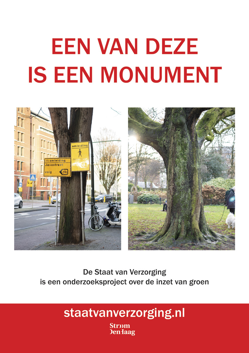 Through the research project De Staat van Verzorging (The State of Care), a group of artists investigates the use of 'green' in public space in The Hague. Their research can be followed online via Instagram: @de_staat_van_verzorging and the special website staatvanverzorging.nl.
