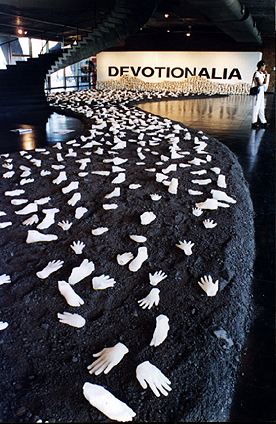 In The Hague, ‘Devotionalia' not only included the project with the school classes and a presentation at Stroom's Spui location, but also a separate section in the free Stadskrant (local newspaper), Devotionalia information on Stroom's website, an appearance on Middageditie (an afternoon tv news program) of the NOS (Dutch Broadcasting Organization), a series of meetings, lectures and discussions in which politicians, teachers, artists and critics were also invited and a symposium devoted to ‘New Genre Public Art', whose speakers were Mary Jane Jacob (curator, USA), Ursula Biemann (artist, director Shedhalle, Zurich), Catherine Queloz (teacher art academy, Geneva) and Stephan Schmidt-Wulffen (KunstVerein, Hamburg) kunstacademie Genève) en Stephan Schmidt-Wulffen (KunstVerein Hamburg).