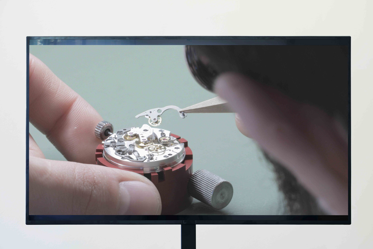 The video Timepiece symbolically unravels system(s) of time and value. The mechanics of the first watch to ever travel to the moon are disassembled and hand-mounted, partly replaced by fake parts and put together again. This Omega, a highlight of luxury status, is part of an illicit system of floating and invisible currencies as real parts travel borders in fake watches and vice versa. It's a reminder of how business models are created around memorable events, and how their relation to time and value are intertwined.