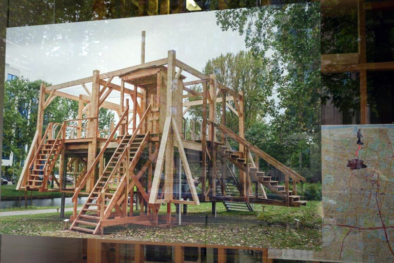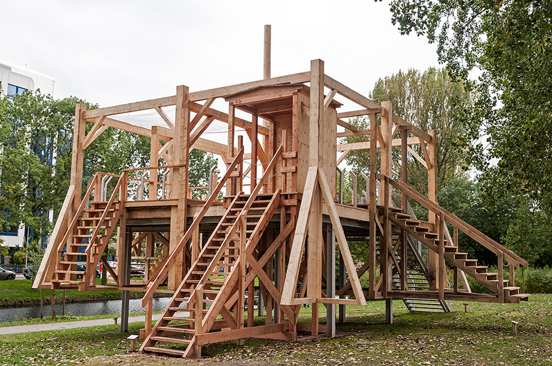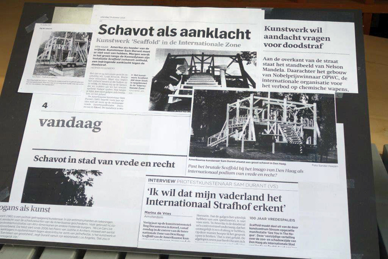 The large presence of law and security institutions in The Hague prompted Sam Durant and Stroom to build Scaffold in The Hague on President Kennedylaan in the city's International Zone.