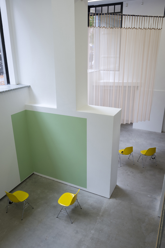 Ruth Buchanan works with language in versatile ways, often combining sound and print. Her installations gently shape the spatial experience through subtle setups involving curtains, walls, and chairs, all meticulously arranged yet unobtrusive.