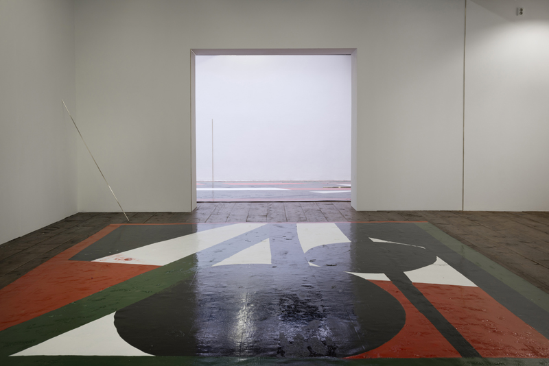 Leidy Churchman and MPA created Painting Rooms at Stroom — an installation with large paintings, walls, metal rods, and a black-and-white video showing their actions with these materials. >> read more