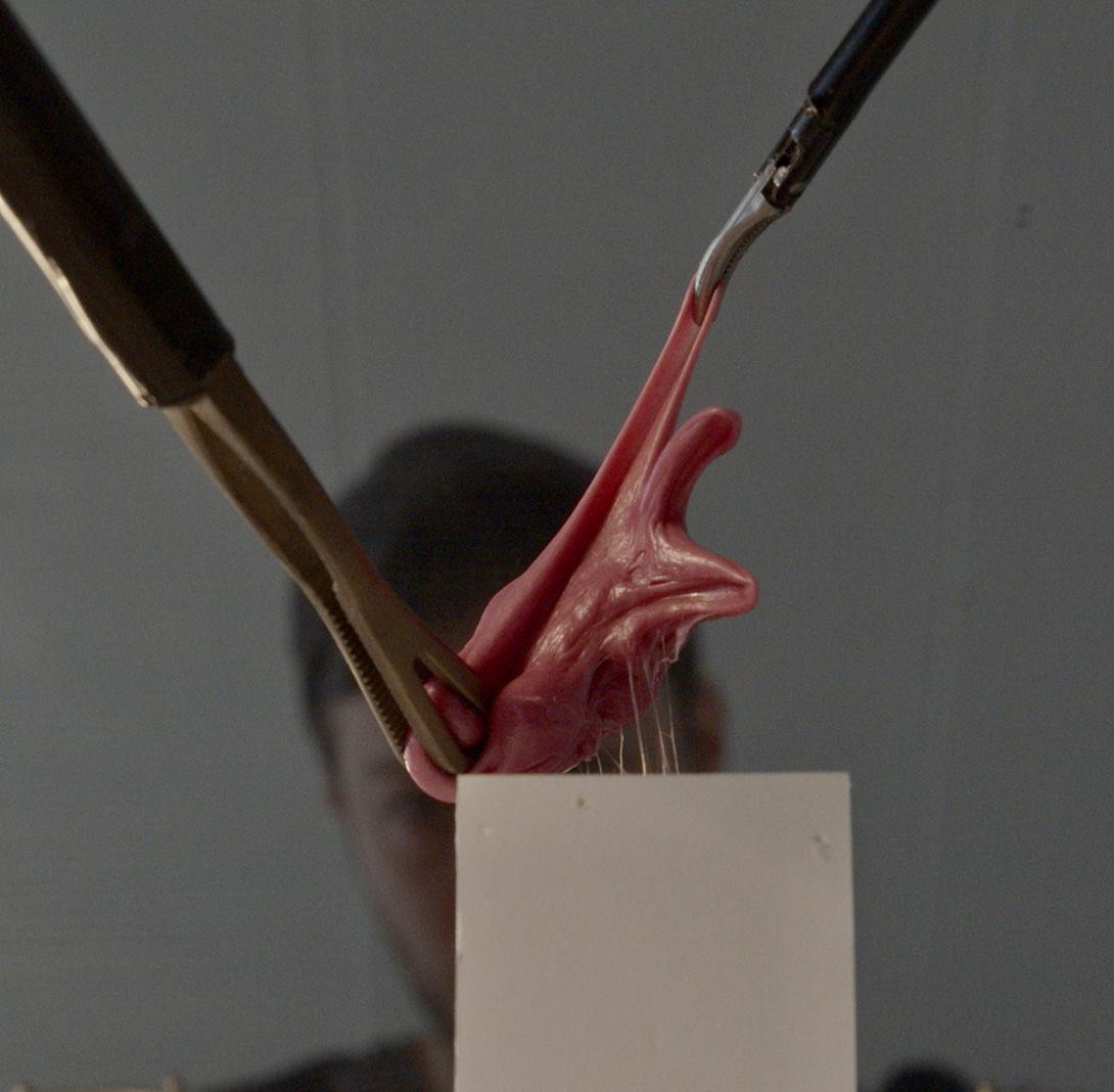 In the development of the work Reach, Karel van Laere collaborated with surgeons, taking a number of ‘laparoscopic' surgical instruments on loan. During laparoscopic, or ‘keyhole' surgery operations, internal cameras show the surgeons' actions live on large screens. The surgeons only ever gain a partial view of the abdomen, they are often working ‘blind'. The patient is surrendered to the skill of the surgeon, the haptic feedback they receive through their hands, and the visual feedback broadcasted on digital screens.