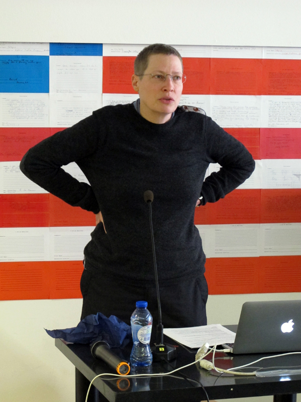 Lecture by Floris Vermeulen on 'Different state interventions in Europe against terrorism, possible (side) effects, and suspect communities' + lecture by Stephanie Simon on 'Resilience in urban design'. Followed by various group sessions and a visit to Scaffold by Sam Durant.