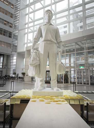Fernando Sánchez Castillo invites everyone to take home one small Tank Man from his installation Made in China. In exchange he asks the visitors to make a statement about democracy and human rights.