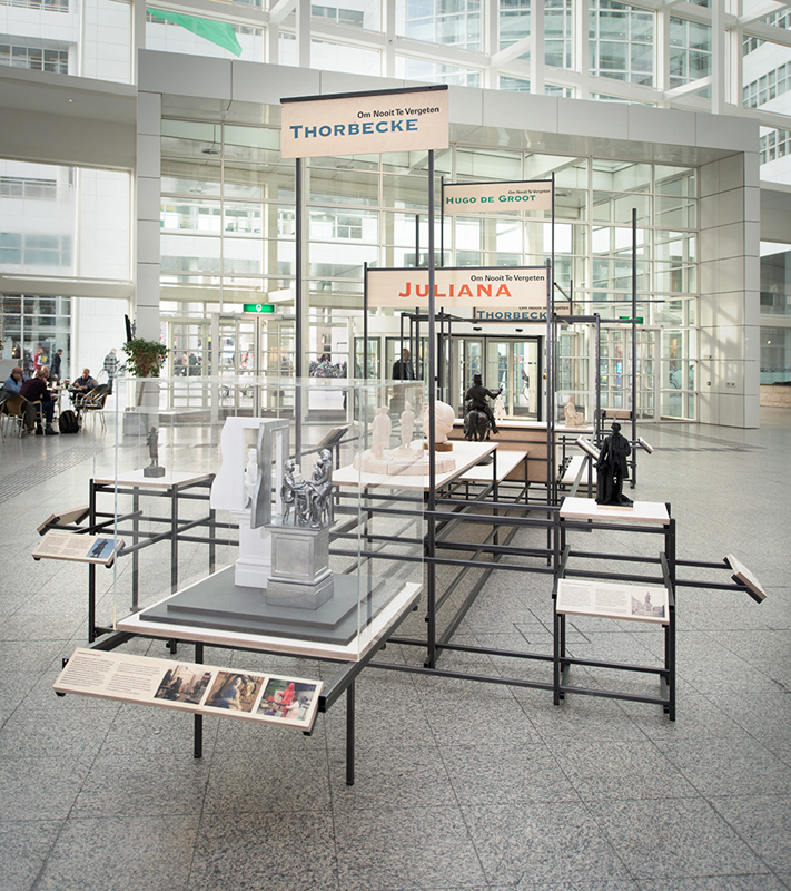 Do statues and monuments always speak the truth? Or do they show only one view of history? And who decides what colour this view has? An exhibition about monuments in The Hague, who commissioned them and the role of (contemporary) artists. The exhibition in Atrium City Hall presents a selection of famous (and not so famous) monuments in The Hague. Or better said, the models of these monuments. Arend Groosman designed two pavilions for their display.