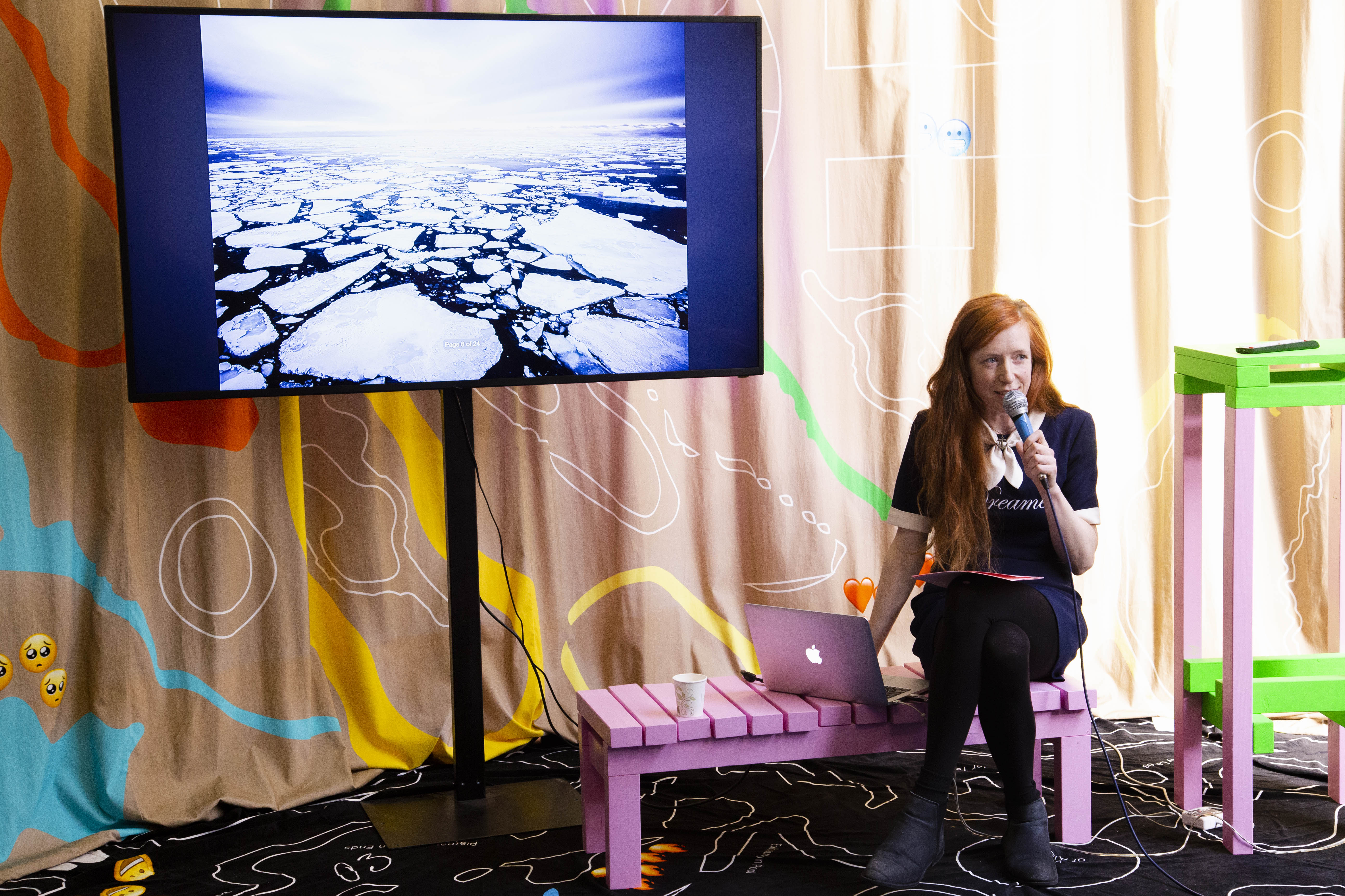 Jenna Sutela works with words, sounds, and other living media, such as Bacillus subtilis natto bacteria and the "many-headed" slime mold Physarum polycephalum. Her audiovisual pieces, sculptures, and performances seek to identify and react to precarious social and material moments, often in relation to technology. Sutela's work has been presented at museums and art contexts internationally, including Guggenheim Bilbao, Museum of Contemporary Art Tokyo, and Serpentine Galleries. She is a Visiting Artist at The MIT Center for Art, Science & Technology (CAST) in 2019-20.