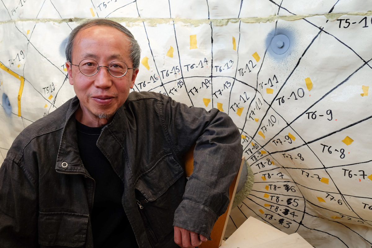 Until the mid-1980s he was a member of the Xiamen Dada movement, which organized happenings, modeled after those of Joseph Beuys, Marcel Duchamp and John Cage. In 1989 he was invited to take part in Magiciens de la Terre, the legendary exhibition dedicated to non-western art in the Centre Georges Pompidou in Paris. After the massacre in Tiananmen Square in Beijing, he decided to stay in France. In 1996 his work was part of the European art event Manifesta in Rotterdam and in 1997 he participated in Skulptur Projekte in Münster. He officially became a French citizen in 1999. In that same year and in 2009 he represented France at the Venice Biennale. His work was part of a.o. the exhibitions Monumenta (Grand Palais, Paris, 2016), and Art and China after 1989: The Theater of the world (Solomon R. Guggenheim Museum, New York, 2017), and is included in many leading, international art collections. In the Netherlands his work The overturned tomb (1994) is part of the sculpture park of the Kröller-Müller Museum in Otterlo.