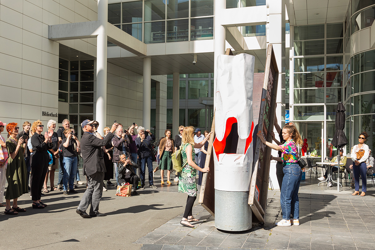 Yvonne Dröge Wendel, onthulling ‘To Be To Gather’, 2022 foto: Naomi Moonlion, courtesy Stroom Den haag