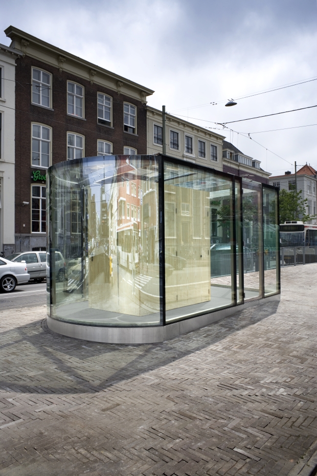 Dan Graham (1942, New York) is de laatste in de reeks van kunstenaars die aan Fiets&Stal meewerkte. Hij introduceerde in de jaren zestig de architectuur in de moderne beeldende kunst en raakte gefascineerd door de licht spiegelende werking van etalageruiten. Meer of minder licht doorlaatbaar, spiegelend glas werd het vaste materiaal voor tientallen van zijn paviljoens, die het midden houden tussen architectuur en sculptuur. Ook bij het beheerderspaviljoen in Den Haag staat het spannende spel van zien en gezien worden centraal.
