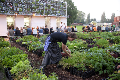 EETFABRIEK - Atelier GRAS! Een nieuwe manier van smaakvol tuinieren: niet alleen de bodem, ook de gevel van de fabriek wordt gebruikt om groente, fruit en kruiden te kweken.