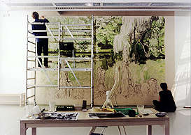 Erik Odijk (Nijmegen, 1959) bracht in de tentoonstellingsruimte aan het Spui wandhoge tekeningen aan, die geïnspireerd zijn op de natuur. Het zijn tekeningen van parken en bossen met oeroude bomen die met houtskool en pastel direct op de muur worden aangebracht. De werken besloegen de complete oppervlakte van de wanden en zijn zo'n 60 meter lang en 3 meter hoog. Net zoals het oerbos torenen zij uit boven de menselijke maat en vullen het hele blikveld. De reusachtige werken van Erik Odijk confronteren de kijker met de intimiderende omvang van de natuur en met de fascinerende verhoudingen tussen leven en dood, orde en chaos. Het tekenen op locatie stelt andere eisen aan de kunstenaar dan werken in het atelier. De fysieke inspanning gedurende een aantal weken is voor Erik Odijk dan ook een essentieel onderdeel van het kunstwerk. Het publiek was welkom te komen kijken terwijl de kunstenaar aan het werk was.