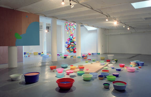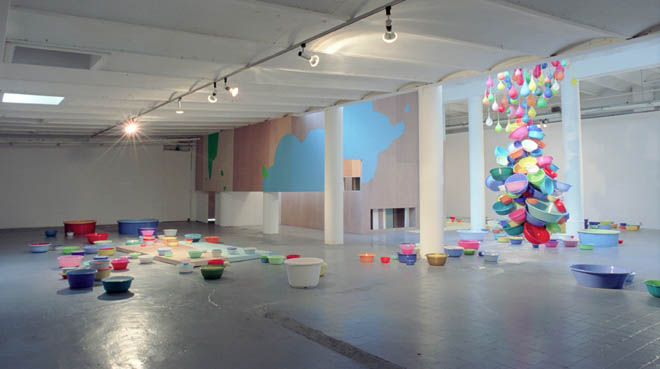 Pietertje van Splunter (1968, woont en werkt in Den Haag) speelt in haar werk met de grenzen van het schilderij en onderzoekt wat schilderen is of zou kunnen zijn. Zij is nieuwsgierig naar wat zich achter de façade van het platte vlak afspeelt, naar de onderbewuste geheime wereld die zich buiten ons gezichtsveld bevindt. In haar tentoonstelling in de Toussaintkade wordt een galerie binnenstebuiten gekeerd en zijn de schilderijen in afzonderlijke delen uiteen gevallen. De schilderijen blijven niet beperkt tot verf op linnen, maar worden een driedimensionaal beeld waar je ín kunt stappen en doorheen kunt lopen. Deze enscenering heeft geen definitieve vorm, het werk is nooit af en kan altijd geheel of gedeeltelijk anders worden opgesteld.