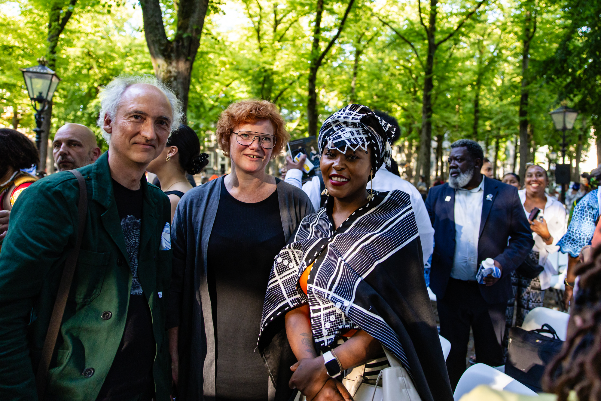 Het werk Remember Our United Beginning van kunstenaar Buhlebezwe Siwani werd feestelijk verwelkomd – gedragen door woorden van kracht, eenheid en verbinding. Met dit monument krijgt Den Haag een blijvende plek om de tot slaaf gemaakten van de trans-Atlantische slavernij te herdenken en te eren.